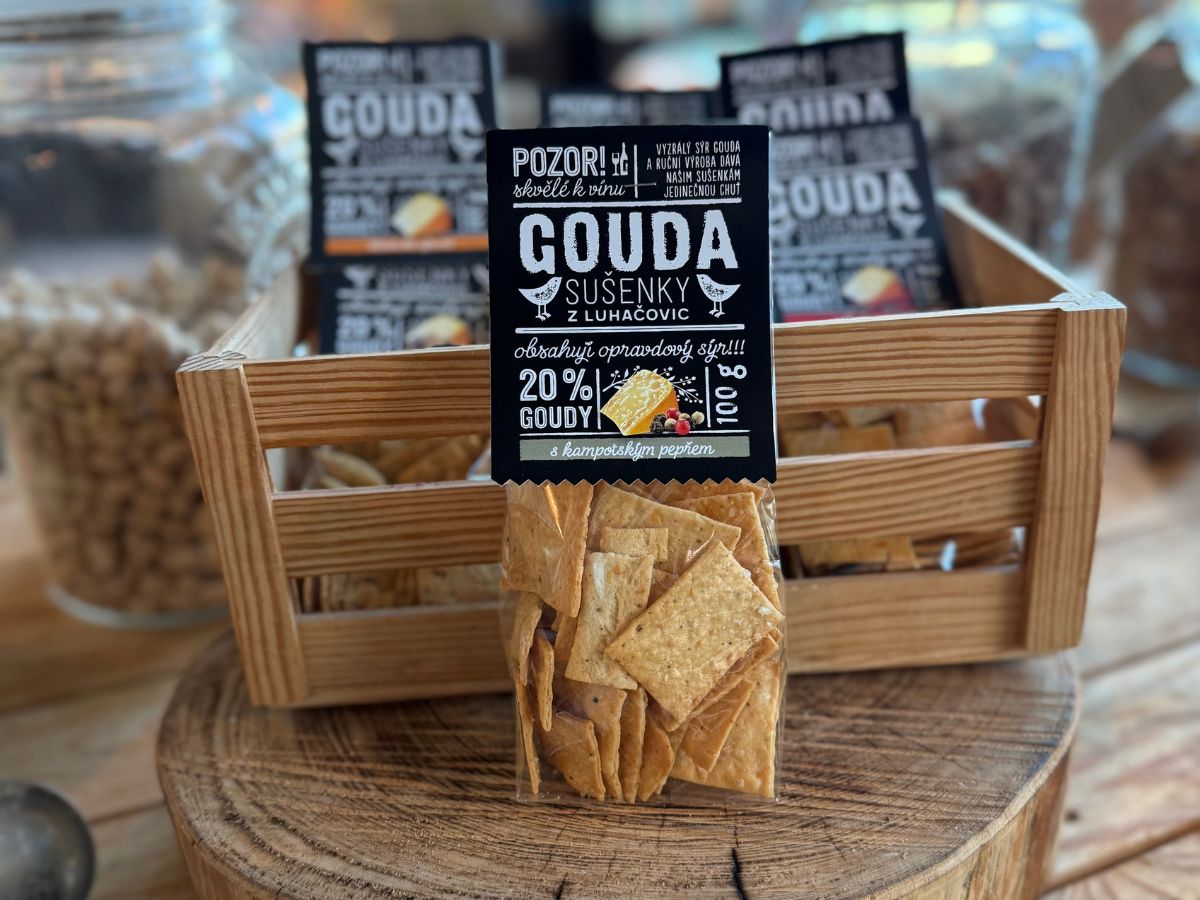 Křupavé a mezi zákazníky oblíbené gouda sušenky dostaly nový kabát. Tentokrát se oblékli do delikátní kombinace s luxusním kampotským pepřem.