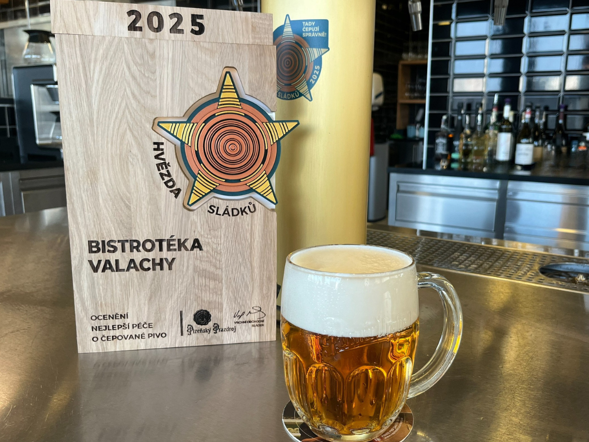 S hrdostí oznamujeme, že jsme v Bistrotéce Valachy obdrželi prestižní ocenění Hvězda sládků 2025, které uděluje Plzeňský Prazdroj jen těm nejpečlivějším restauracím.