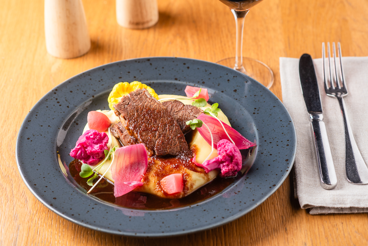 Ochutnejte hovězí a zvěřinový tatarák, kachní prso sous-vide s celerovo-bramborovým pyré, zauzenou vepřovou panenku se švestkovou omáčkou nebo grilovaného lososa s jablečno-celerovým salátem.