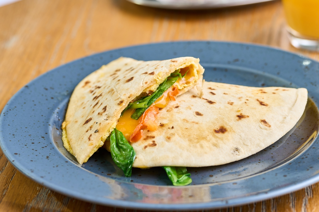 Wrap s vejcem, špenátem, cheddarem a rajčaty 185 Kč /FOTO /