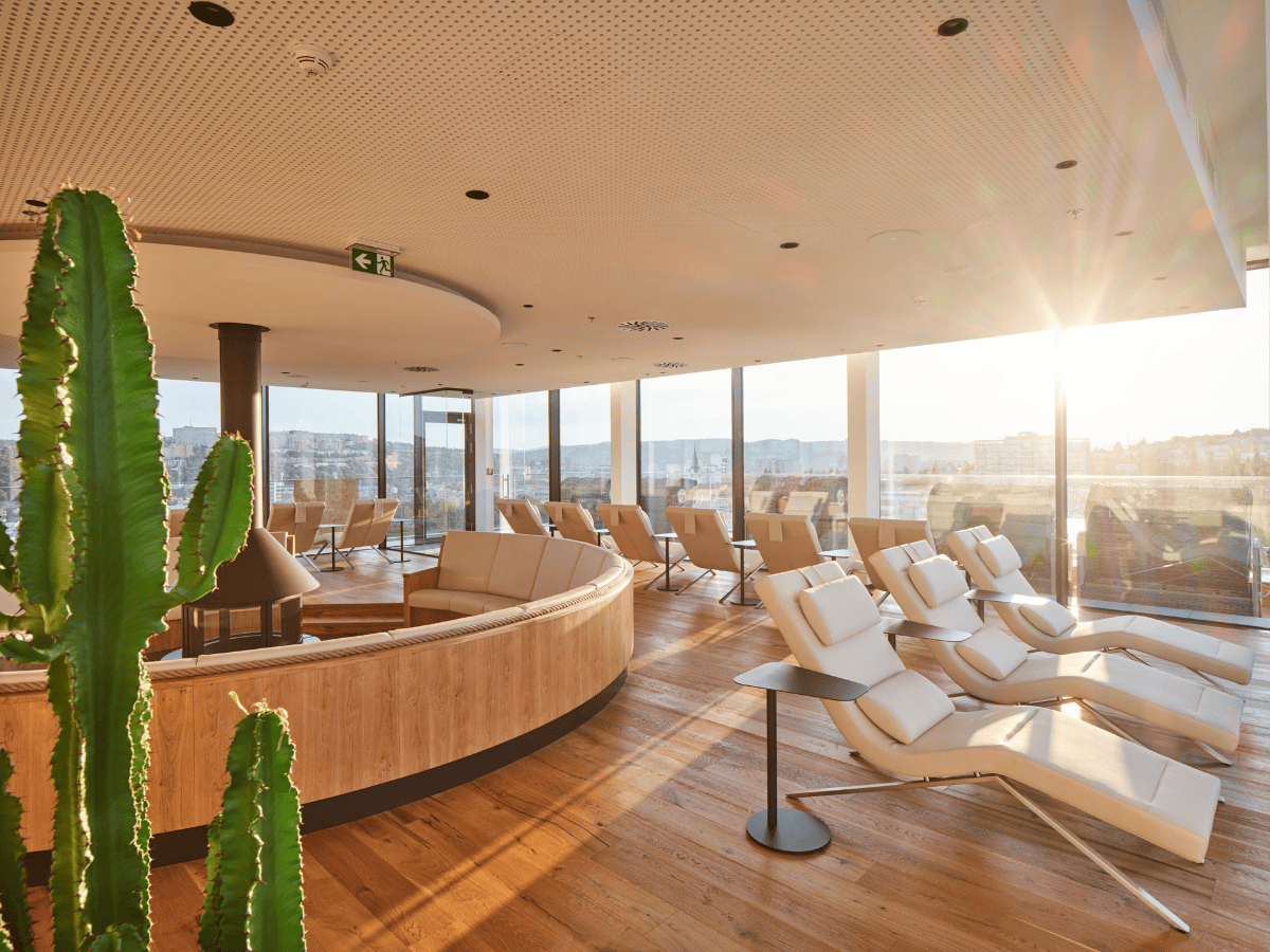 Vyzkoušejte ceremoniální finskou saunu, infrasaunu s dechberoucím výhledem na Zlín nebo parní saunu. Pro jemnější prohřátí je tu sanárium (60–70 °C), které pomáhá uvolnit stres, a nechybí ani bazén s hydromasáží a výhledem na ikonickou zlínskou architekturu.
