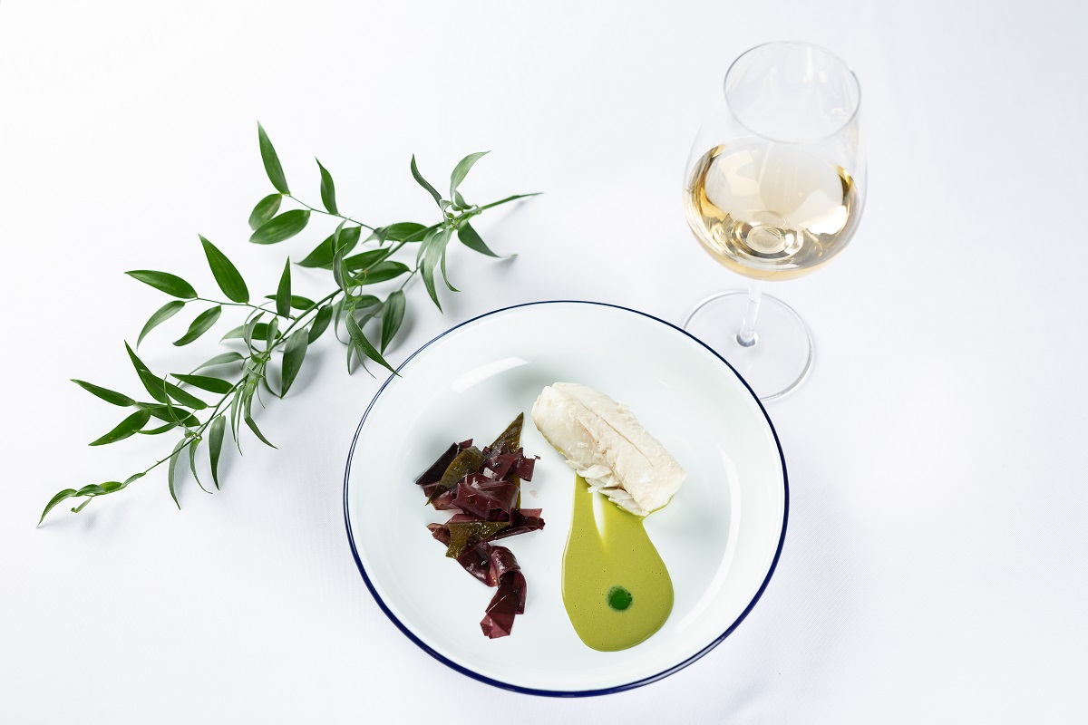 Jako hlavní chod se bude podávat pošírovaná treska s omáčkou ze zeleného čaje a se salátem z mořské řasy.