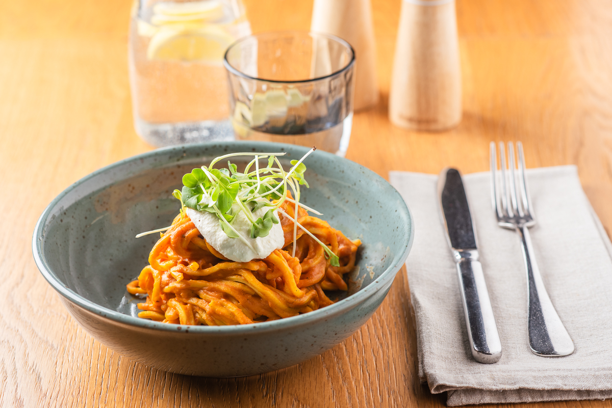 FIT: Pasta s krémem z pečené kořenové zeleniny, kadeřávkem a uzenou ricottou* 265 Kč /FOTO /